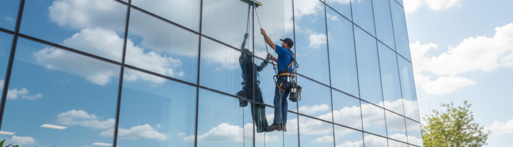 High-rise exterior window cleaning Twice yearly to yearly Removes buildup, protects façade, complies with safety codes